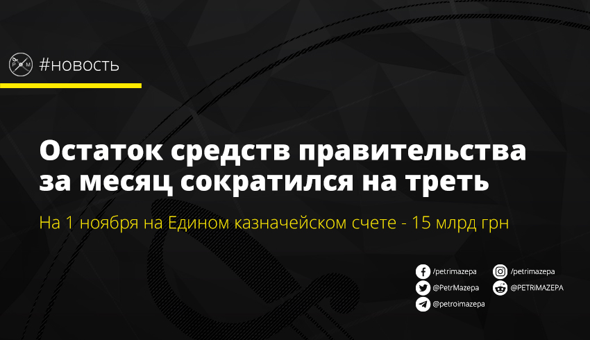 Остаток средств на Едином казначейском счете на начало ноября составил 15,1 млрд грн