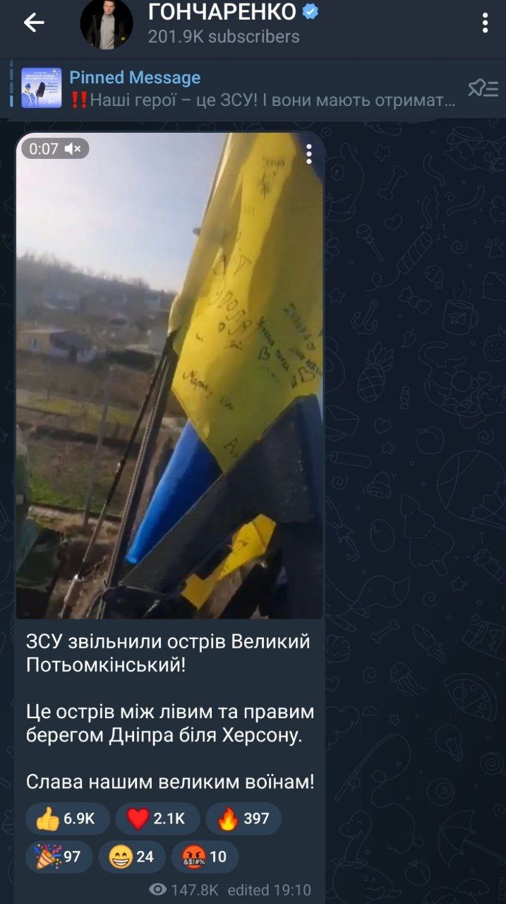 Также Гуменюк подтвердила, что на видео военного, которое опубликовал народный депутат Алексей Гончаренко, речь шла именно об установке на острове флага. А то, что Гончаренко сделал сообщение об освобождении, это его личная интерпретация.