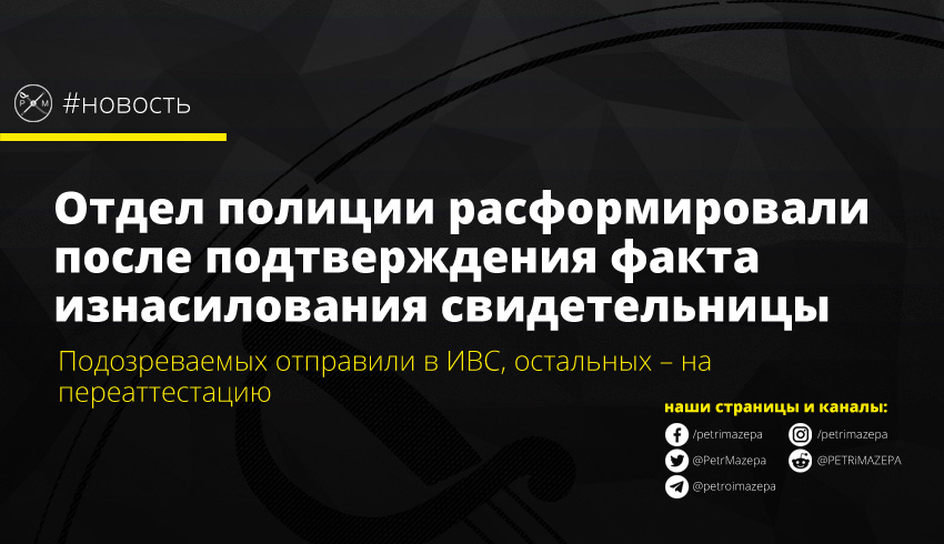 Внутренняя безопасность Нацполиции, после проверки заявления пострадавшей, задержала двух полицейских Кагарлицкого отдела полиции по подозрению в изнасиловании. Сам отдел расформировали и отправили на переаттестацию.