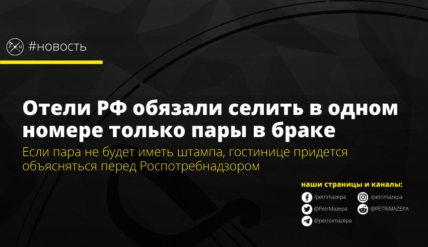 Интересно, что по словам представителя гостиничного бизнеса, рекомендации эти не обязательно будут соблюдаться – гостиницы не будут спрашивать документы, а просто «сами будут определять, как заселять гостей». При этом в одном номере могут оказаться и друзья, и жених и невеста, и кто угодно еще, потому что в рекомендациях есть также пункт о сопровождающем лице, коим может оказаться кто угодно.