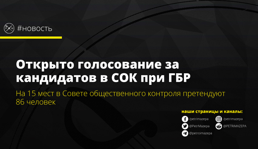 Государственное бюро расследований открыло голосование за кандидатов в состав Совета общественного контроля (СОК). Поддержать кандидата можно будет в течение суток с момента начала голосования, причем каждый голосующий может поддержать до 5 кандидатов.