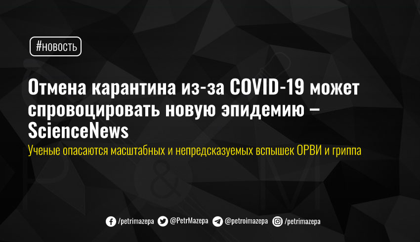 На фоне пандемии сезонные пики респираторных инфекций не были зафиксированы, снижение заболеваемости ОРВИ и гриппом оказалось даже существеннее прогнозируемых. Люди чаще моют руки, носят маски и соблюдают дистанцию куда чаще, чем до введения ограничений, ввиду чего грипп постепенно отступает. Однако сами по себе вирусы в популяции остались, они продолжают мутировать, но у большинства людей не вырабатывается иммунитет к новым штаммам. Из-за этого отмена ограничений может привести к масштабным и непредсказуемым вспышкам респираторных заболеваний.