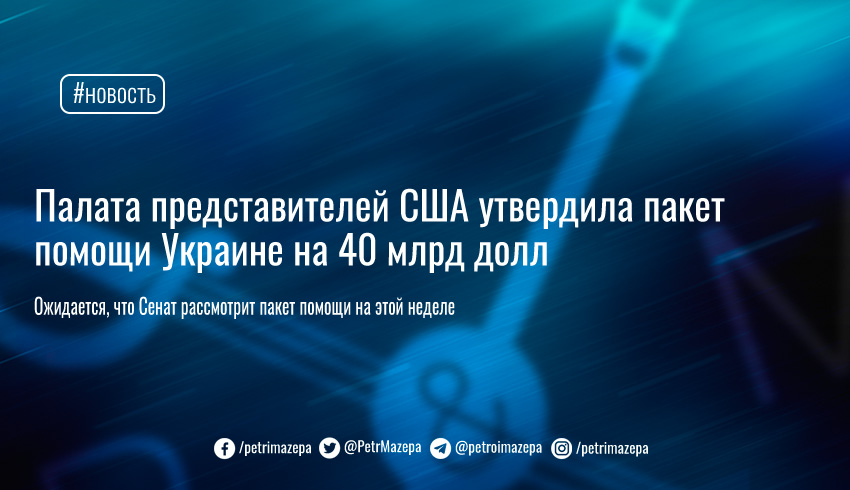 Палата представителей США согласовала пакет военной и другой помощи для Украины на суму почти 40 млрд долл. «За» проголосовали 368 конгрессменов, «против» — 57, все из Республиканской партии.