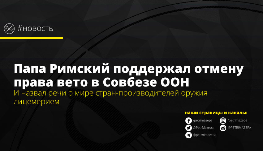 Естественно российское СМИ заявляет, что Папа обвинил в лицемерии «западные страны», однако Франциск достаточно четко пояснил что имеет в виду те государства, которые «живут оружием». А больше всего на европейском континенте оружия продает именно РФ (по данным за 2018 год, на РФ приходится 21% экспорта вооружения в мире). Россия последовательно выступает за сохранение института вето, и накануне представитель страны-агрессора при ООН заявил, что для Москвы ограничения ее права вето «неприемлемы».