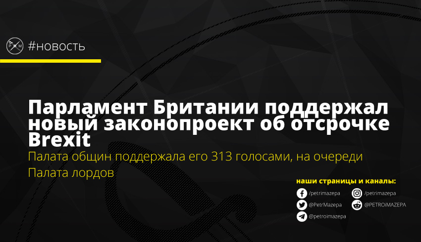 Нижняя палата британского парламента проголосовала за законопроект (с перевесом в один голос), обязующий правительство попросить у ЕС вновь отсрочить Brexit. Теперь текст документа 4 апреля будет представлен на рассмотрение Палаты лордов.