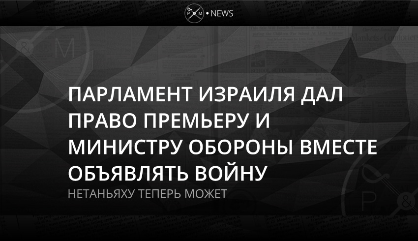 Парламент Израиля дал право премьеру и министру обороны вместе объявлять войну