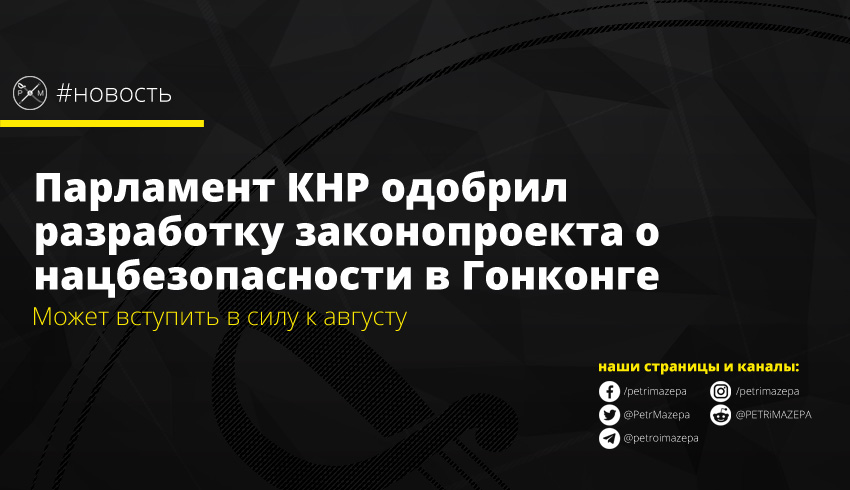 Всекитайское собрание народных представителей (ВСНП, высший законодательный орган) 13-го созыва одобрило резолюцию о разработке законопроекта об обеспечении национальной безопасности в Гонконге. Закон предусматривает, что в регионе запретят антиправительственные призывы, призывы к отделению от Китая.