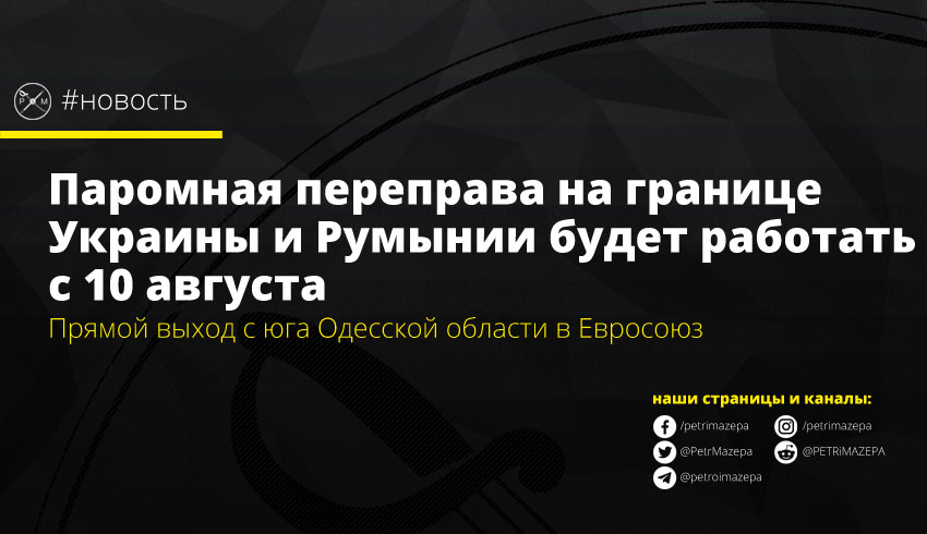 Румыния официально подтвердила начало работы пункта пропуска Орловка – Исакча с 10 августа. Паромная переправа, которая обеспечит прямой выход с юга Одесской области в Евросоюз, пока будет работать только для грузовых автомобилей.