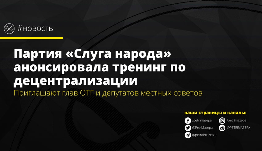 Партия «Слуга народа» анонсировала проведение тренинга по теме децентрализации для избранных от этой партии глав объединенных территориальных громад и депутатов местных советов.