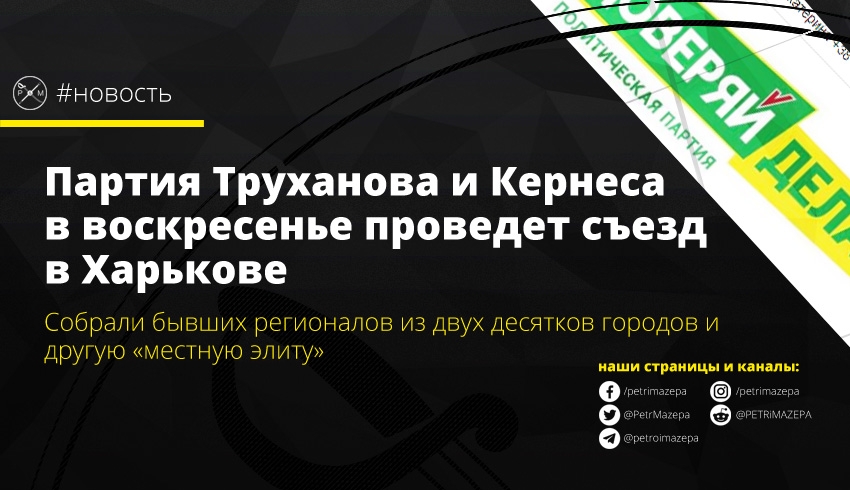Геннадий Труханов в очередной раз провел ребрендинг партии. Теперь «Довіряй ділам» перевели на украинский, а в логотип добавили цвет Харькова (или команды Зеленского – он одинаков в данном случае). Сама партия в воскресенье проведет съезд в Харькове, чтобы создать списки на парламентские выборы. И она все больше становится похожа на бюджетный клон «Партии регионов».