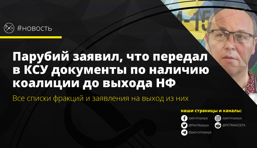 Председатель Верховной Рады Андрей Парубий сообщил, что передал в Конституционный Суд Украины (КСУ) списки фракций двух фракций (БПП и «Народного фронта») и все заявления депутатов, которые поступали в аппарат ВР про выход из коалиции.