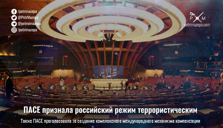 Парламентская ассамблея Совета Европы (ПАСЕ) по результатам срочных дебатов по теме «Новое обострение агрессии российской федерации против Украины» приняла резолюцию, в которой объявила режим рф террористическим. Также ПАСЕ обновила свои оценки и рекомендации и обратилась к государствам-членам Совета Европы с рядом предложений по помощи Украине.