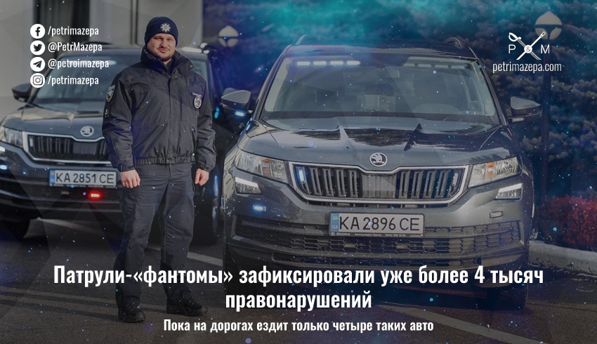 Первый заместитель начальника департамента патрульной полиции Алексей Белошицкий рассказал о первых днях работы «фантомных» патрулей на дорогах Украины. В первый день было составлено почти тысячу протоколов, а всего с 25 января было вынесено 4212 постановлений по правонарушениям, зафиксированных «фантомами» в автоматическом режиме.