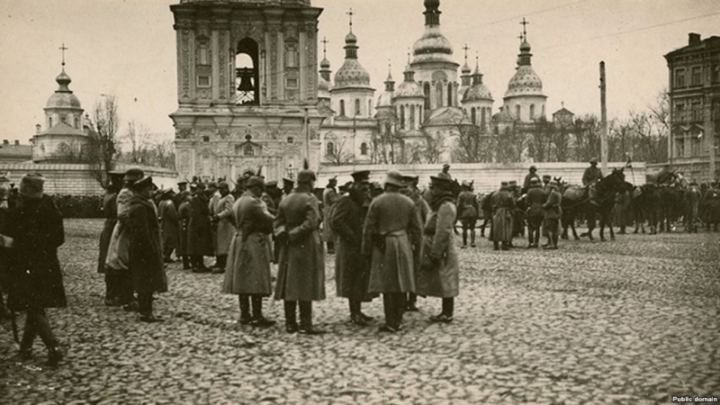 Немецкие военные перед Софийским собором, Киев, весна 1918 года