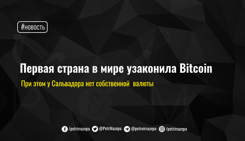 Сальвадор стал первой страной, которая узаконила криптовалюту Bitcoin как официальное платежное средство в стране. Bitcoin будет использоваться вместе с долларом США в стране.