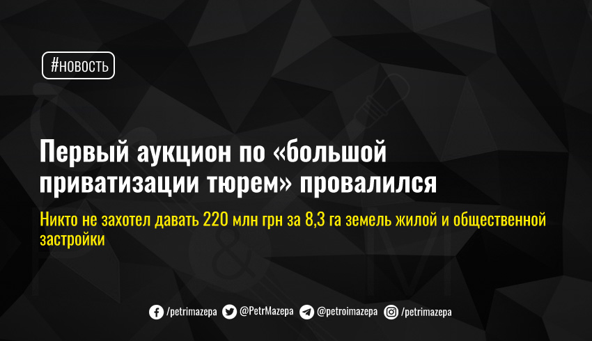 «Потенциальные покупатели расценили стартовую цену как слишком высокую и заявки не подали. Аукцион переносится на апрель со снижением стартовой цены», - сообщил министр юстиции Денис Малюська в Facebook.