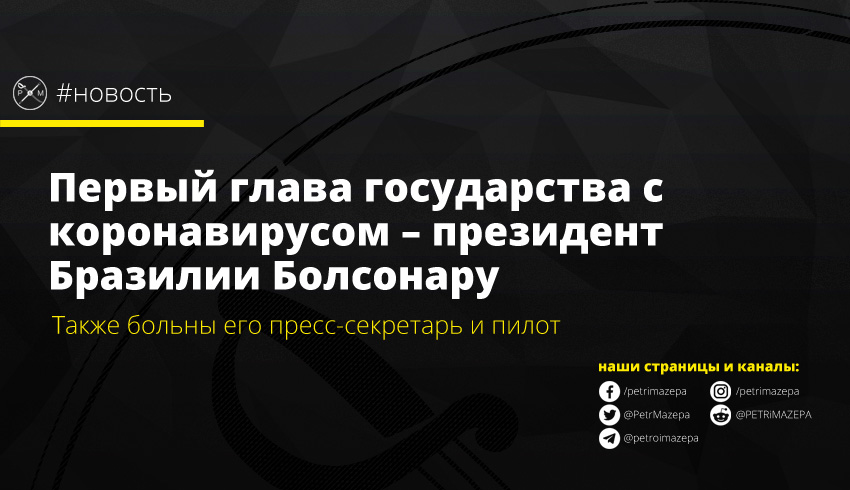 Также сообщается, что кроме его пресс-секретаря, заражен еще и командир экипажа президентского самолета, на котором Болсонару на днях вернулся из США.