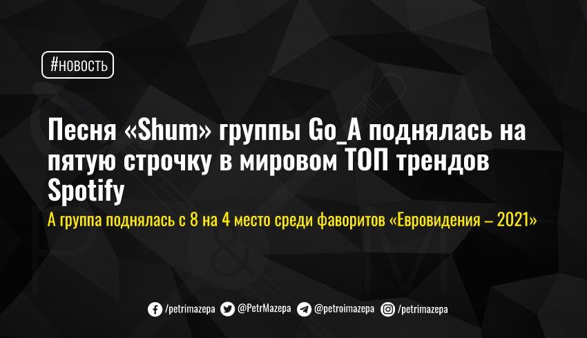 Песня «Shum» группы Go_A поднялась на пятую строчку в мировом ТОП трендов Spotify