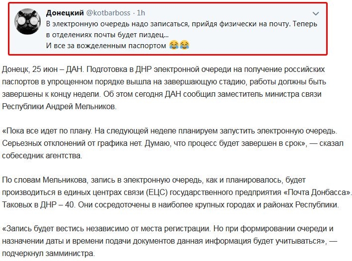 В то же время у ОБСЕ «подтверждение» выглядит следующим образом: «30 июня Миссия получила письмо от вооружённых формирований с неподконтрольных правительству районов Луганской области, в котором сообщается о том, что они завершили разведение сил и средств на согласованном участке в районе Станицы Луганской». Из реальных дел, ОБСЕ зафиксировала работы ВСУ по демонтажу передовых фортификационных сооружений и разминированию, а вот пророссийские террористы ограничились «работами по демонтажу укрытия» и «убрали несколько бетонных блоков на участке разведения».