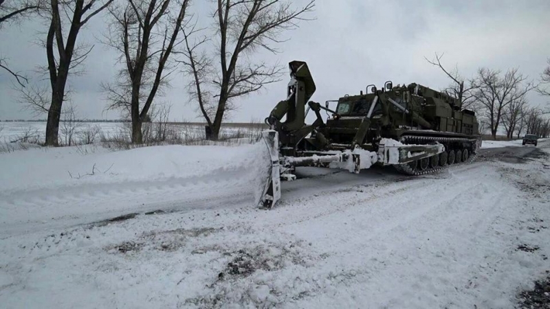 Относительное затишье эффективно использовали военнослужащие, выполняющие задачи в Донецкой области. Военной инженерной техникой они расчистили от снежных заносов автомобильную дорогу между прифронтовыми Марьинкой и Красногоровкой, сообщает пресс-центр штаба АТО. Понадобилось несколько часов работы тяжёлой гусеничной инженерной техники, чтобы прифронтовые дороги были расчищены от снежных заносов и можно было беспрепятственно передвигаться.