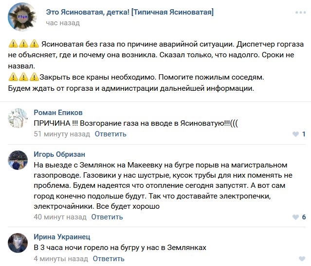 В Ясиноватой попраздновали так хорошо, что на входе в город со стороны Макеевки произошло возгорание газа — и теперь 12000 абонентов сидят без «голубого топлива».