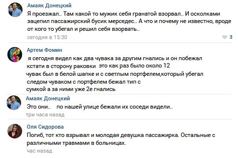 В Донецке продолжают взрываться автомобили. Вчера, по данным Telegram-канала «Терриконовая долина», взорвались два авто: «около кафе СССР (ул. Бахметьева 6б, Текстильщик) Мерседес Вито 2 погибших, 4 пострадавших; кроме того, говорят о взорвавшемся авто на Южном [автовокзале]», — сообщают «Новости Донбасса». Позднее подконтрольные террористам СМИ подтвердили информацию по взрыву на Текстиле, уточнив, что раненых было шестеро, а погибших таки двое.