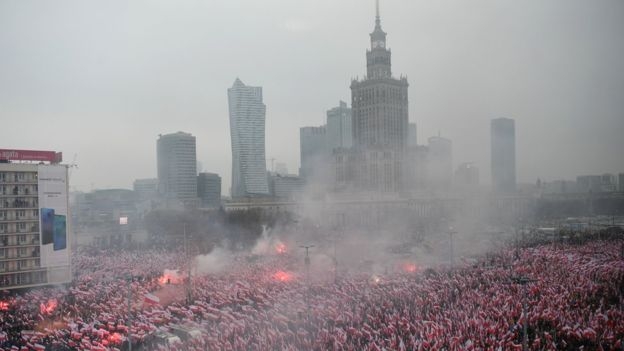Польша накануне отметила День независимости. В Варшаве по этому случаю прошёл многотысячный марш (президент страны Анджей Дуда тоже участвовал), но оппозиция и несколько экс-президентов шествие решили игнорировать из-за присутствия ультраправых. Как ни старалась мэр столицы Ханна Гронкевич-Вальц от них избавиться, но всё-таки не вышло.