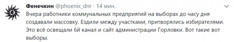 На своих псевдовыборах террористы ОРДЛО как могли создавали массовость возле урн. В ход пошли розыгрыши пополнений на местную мобильную связь, скидки на продовольствие (с квотами на объём покупок), использование админресурса (особенно среди бюджетников и студентов). Всё, кроме админресурса, быстро закончилось, и тогда террористы начали проводить поквартирные обходы с призывами идти голосовать. Всё это было нужно только для картинки в местные и российские СМИ, поскольку результаты уже нарисованы.