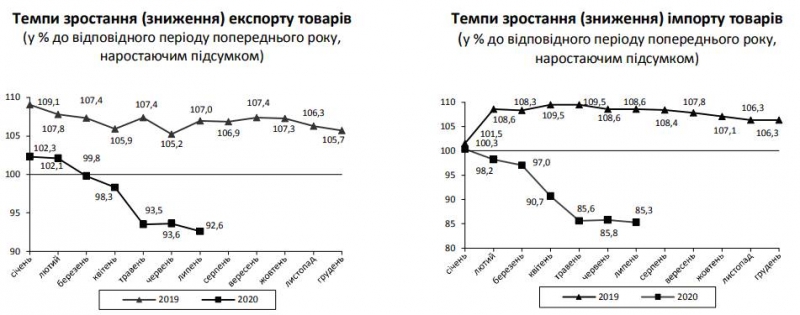 Начнём с солнечных и позитивных новостей, от которых на душе становится легко. Украинский товарооборот в январе-июле 2020 года обвалилсяна 7,4% относительно этого же периода прошлого года, а отрицательное сальдо составило 2,12 млрд долларов. Арифметика здесь простая: импорт упал до 28,75 млрд долларов, экспорт — до 26,63 млрд. Главными рынками для нашего экспорта остаются Китай, Польша и — oops — Россия. Импортируем из Германии и тех же Китая с Россией. Из действительно хорошего — по сравнению с январём-июлем 2019 года, «экспортный минус» сократился на 57,3% (тогда он составлял 4,97 млрд).