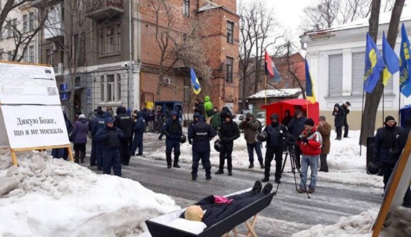 По случаю российских президентских выборов недалеко от здания консульства РФ в Киеве помитинговали представители «ОУН», Комитета освобождения политзаключенных и прочие активисты. Акцию назвали «Народный разрыв дипломатических отношений с агрессором».