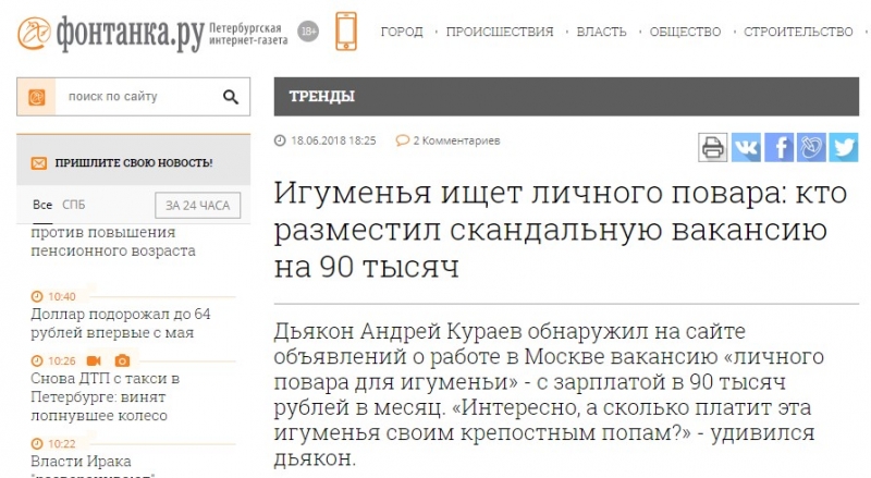 «Требования к соискателям серьёзные: обязательно профильное образование, опыт работы поваром более 5 лет, знание санитарных правил и самое удивительное — умение сервировать стол для VIP-персон», — пишет издание.