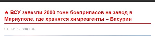Упавшую активность провокаций боевики компенсируют запудриванием мозгов жителям ОРДЛО. Басурину похоже подвезли новую порцию креатива, и он начал вещать, что ВСУ хранит боеприпасы на метзаводе в Мариуполе.