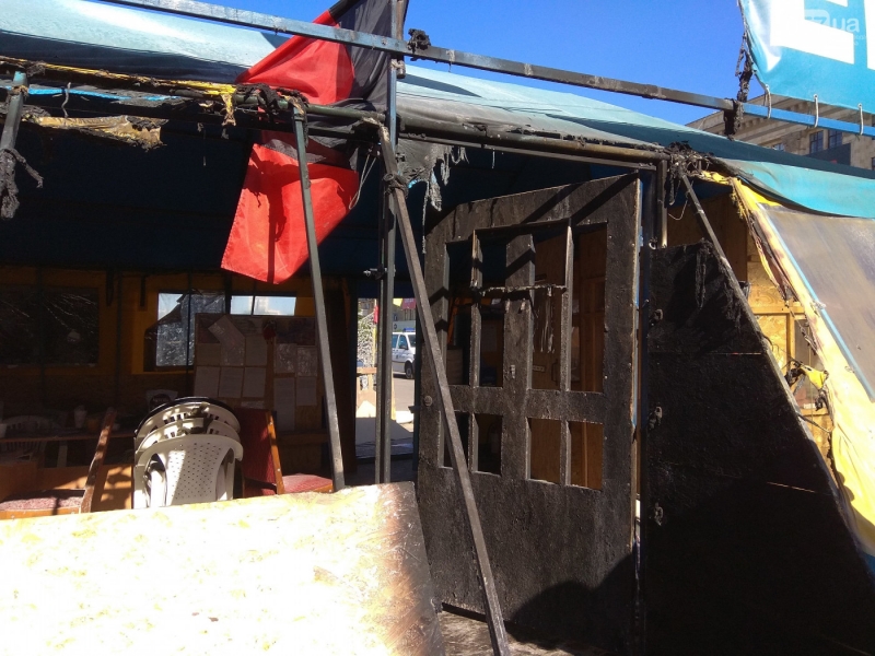 Харьковский окружной административный суд подал пример Киевскому и отказал горсовету в демонтаже волонтёрской палатки на площади Свободы. Адвокаты горсовета «не смогли доказать, что палатка угрожает национальной безопасности». Около 04:30 утра в понедельник неизвестные подожгли волонтёрскую палатку. Благодаря круглосуточному дежурству огонь удалось оперативно погасить, затем неподалёку нашли «рюкзак с горючей жидкостью». Огонь повредил дверь, сгорела часть палатки и баннер. Также огонь повредил стол, где собирали листовки с подписями против переименования проспекта Петра Григоренко в маршала Жукова. Сейчас на месте работают следователи.