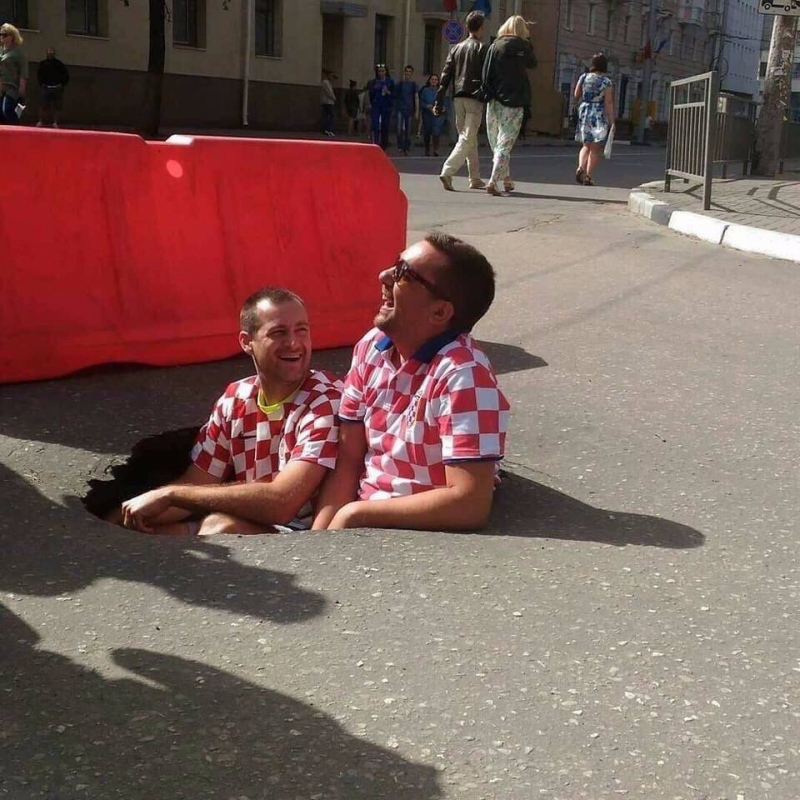 И только после фоток иностранных болельщиков яму решили заделать, а не просто поставить предупредительный знак. Ну, во всяком случае, отчитались о проведённых работах.