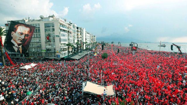 А в Измире тем временем устроили массовую акцию в поддержку оппозиционного политика Мухаррема Индже – главного соперника действующего президента Реджепа Эрдогана