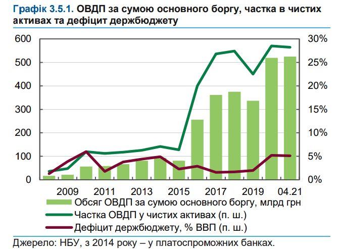 Но в НБУ считают, что такие погашения не должны «создавать значительных проблем Министерству финансов». Хотя спираль заимствований через ОВГЗ придётся раскрутить ещё сильнее. Что касается еженедельного размещения ОВГЗ по вторникам — вчера подняли процент только под одной из позиций и смогли назанимать почти 11,4 млрд грн. В целом же, ОВГЗ в структуре госдолга предсказуемо рванули вверх в 2020 году, когда новые власти уже освоились в министерствах и других институтах.