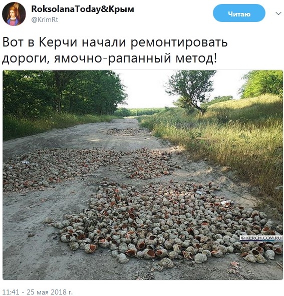 Тем временем в аннексированном Крыму оккупанты строят дороги из рапанов — экологично, технологично, инновационно.