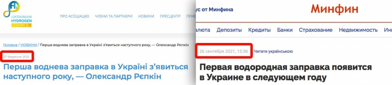 А в воскресенье выяснилось, когда в Украине появится первая водородная заправка. Сроки размытые, но понятно одно ― произойдёт это в следующем году. Но это новости из будущего в прямом смысле ― СМИ написали про планы в воскресенье днем, ссылаясь на сайт Ukrainian Hydrogen Council, где эта новость опубликована якобы уже в понедельник (этот абзац писался 27 сентября около полвторого ночи ― так что или у них или очень усердный новостник, или проблемы с календарем публикаций).
