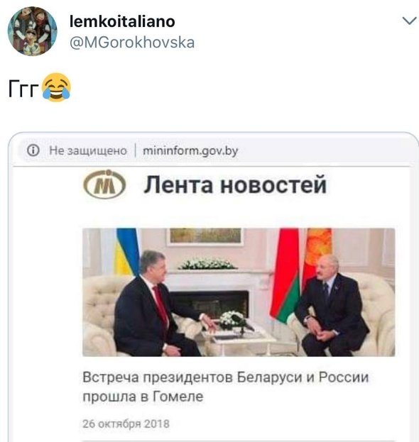 Двухсторонний форум регионов Украины и Беларуси состоялся в этом году в Гомеле, а следующий будет в 2019-м в Житомире. В Гомеле Порошенко сообщил, что товарооборот между Украиной и Беларусью составляет 4,5-4,6 млрд долларов в год, а цель на ближайшее будущее — 10 млрд долларов в год. Нашлось время и на встречу с глазу на глаз между президентами Украины и Беларуси. Некоторые государственные СМИ Беларуси так спешили это осветить, что сначала набокопорили (но потом всё подтёрли).