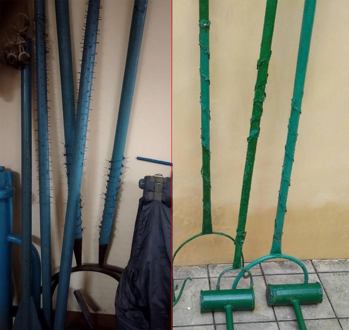 Прокуратура Полтавской области сразу в нескольких местных тюрьмах нашла самодельные спецсредства для пыток — зацепы и ухваты, обмотанные колючей проволокой с острыми металлическими шипами, ломы и кувалды. Проверки проходили в Полтавской ИК №64, Божковской ИК №16, Крюковской ИК №29 и Надержинщинской ИК №65. Использование обнаруженных средств (с шипами в 2-3 см) к осужденным недопустимо и может принести физические страдания, создать реальную угрозу здоровью и их жизни, передаёт прокуратура Полтавщины. По данному факту начато уголовное производство по ч.2 ст.365 (превышение власти или служебных полномочий работником правоохранительного органа) и ч.2 ст.263 (незаконное обращение с оружием) УК. Запрещённые предметы изъяли для проведения ряда экспертиз.