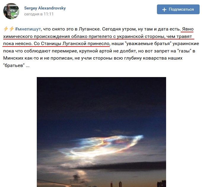 Когда больной и не лечишься. Перламутровые облака приняли за «химическое оружие».