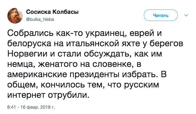 ТАСС анонсировало пресс-конференцию беглого страусозаводчика Януковича. 1 марта для чётко определённого круга журналистов он расскажет, почему надо голосовать за Путина, о причастности представителей нынешней украинской власти к расстрелу протестующих на Майдане. Совсем у кремлинов пригорает — уже косноязычного от нафталина отряхивают и завозят титановые ручки не пресс-конференцию.