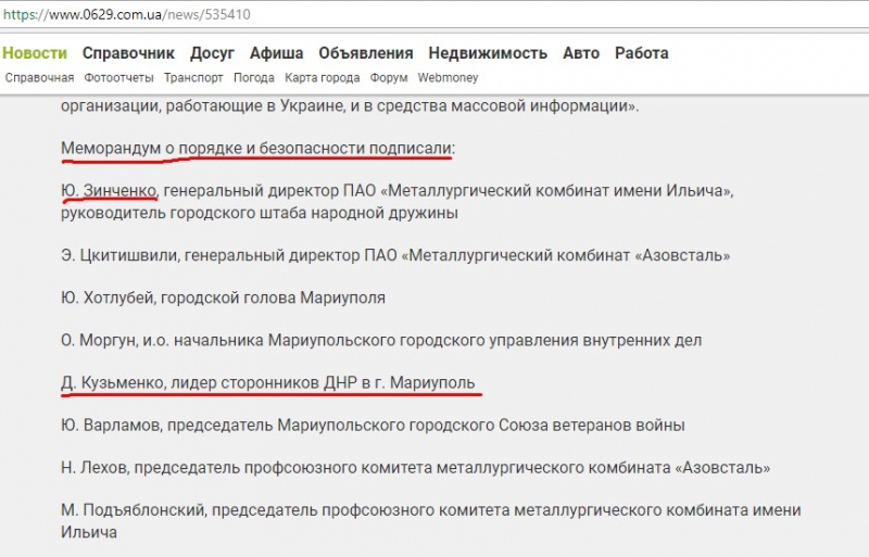 Об очередной порции совсем не росы, но в очи, от главрадикала Ляшко сообщают «Новости Донбасса». Олег Ляшко отрицает, что глава исполкома Радикальной партии Юрий Зинченко в мае 2014 года, будучи директором Мариупольского меткомбината им. Ильича, подписал меморандум с представителями группировки «ДНР» в Мариуполе. «Я уже сказал о том, что Зинченко, управляя ММК Ильича, отказался под угрозой расстрела снять украинский флаг с печей комбината, и заслуживает только уважения и поддержки. Я хотел бы, чтобы таких, как Зинченко, было больше в моей команде», — утверждает Ляшко в кулуарах ВР. А о том, как это было в 2014 году, можно почитать тут.