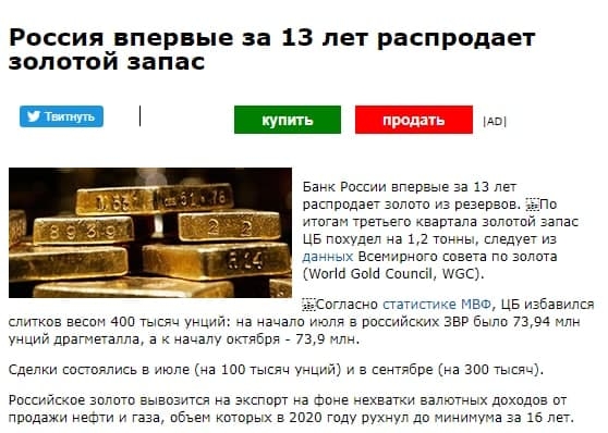 Хорошие новости — РФ начала продавать золото из своих запасов. Плохие новости — запасов много.