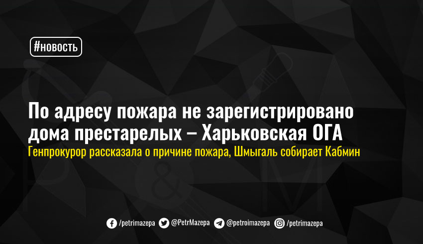 По адресу, где сегодня произошел пожар со многочисленными человеческими жертвами, не зарегистрировано никакого дома престарелых, сообщили в Харьковской ОГА. Генпрокуратура при этом уже назвала предварительную причину возгорания, а премьер-министр Денис Шмыгаль
