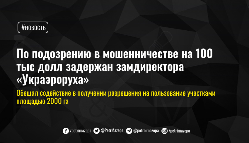 По подозрению в мошенничестве на 100 тыс долл задержан замдиректора «Украэроруха»