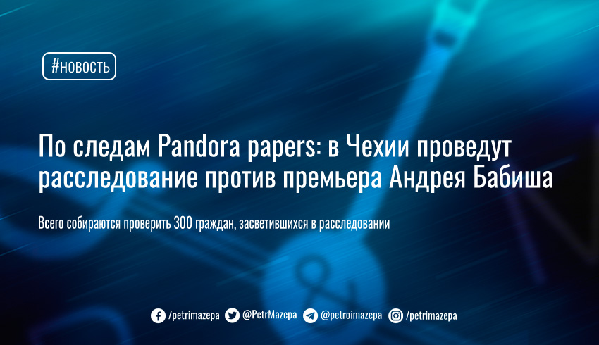 Национальный центр борьбы с организованной преступностью, входящий в структуру полиции Чехии, начал расследование против премьер-министра страны Андрея Бабиша. Поскольку в связи с утечкой данных Pandora papers было выявлено, что премьер приобрел через оффшорную компанию замок во Франции. В «Досье Пандоры» опубликованы данные на 300 чешских граждан.