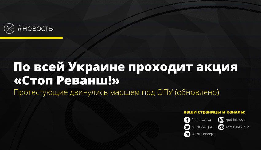 Сегодня по всей Украине проходит акция «Стоп Реванш!» - организаторы акции, «Рух Опору Капітуляції», требуют не допустить капитуляции перед агрессором, отмечая что нынешняя власть «уверенно движется курсом Януковича».