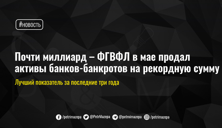 Почти миллиард – ФГВФЛ в мае продал активы банков-банкротов на рекордную сумму