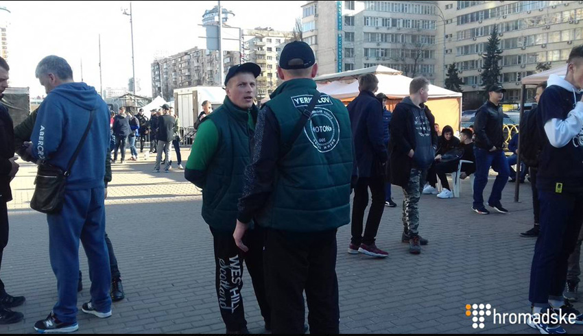 Сначала их было около сотни, но к 17-18 часам их количество выросло до 250 человек спортивного телосложения. Они собираются они возле палаток с надписью «Общественная приемная депутата», сообщает «Украинская правда». Они утверждают, что деньги за сборы и нахождение у ЦИК им не платили.
